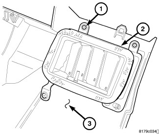 1. Position the air outlet (2) onto the steering column opening cover or IP base panel (3) and install the four screws (1). Tighten the screws to 2 Nm (17 in. lbs.).