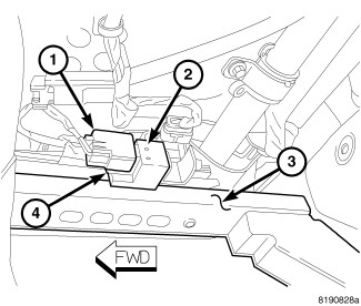 2. Align the open end of the sensor to the slide tab of the sensor bracket located on the outboard side near the rear of the upper outboard seat track (3).