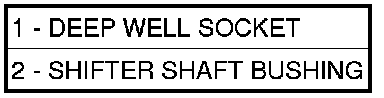 Using an appropriate size deep-well socket (1), install bushing (2) in selector shaft bore.