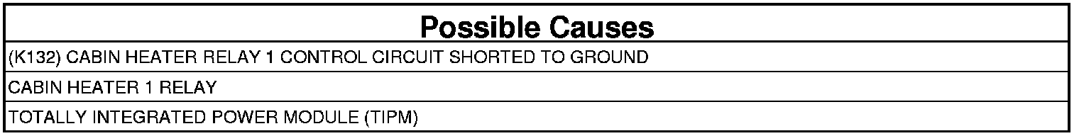 - Repair the (K132) Cabin Heater Relay 1 Output circuit for a short to ground.