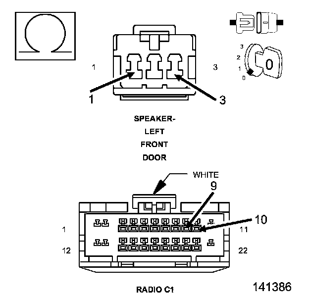 4. Measure the resistance of each speaker (X201)(+) and (X291)(-) circuit between the radio and the speaker.