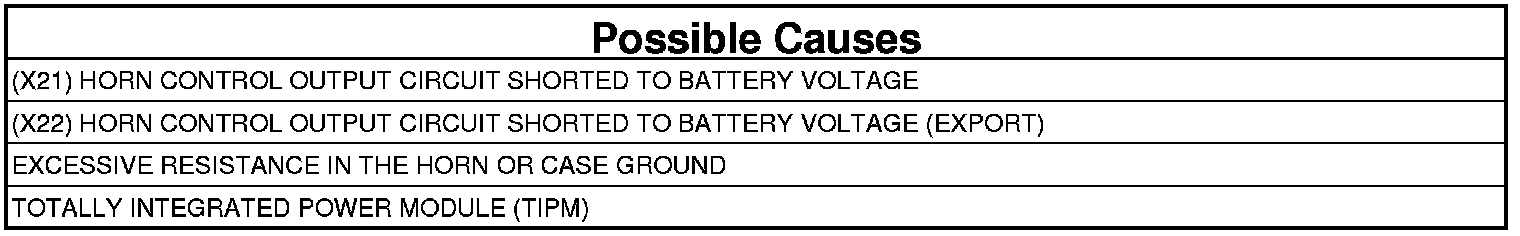 A shorted high condition in the (X21)/(X22) Horn Control Output circuit.