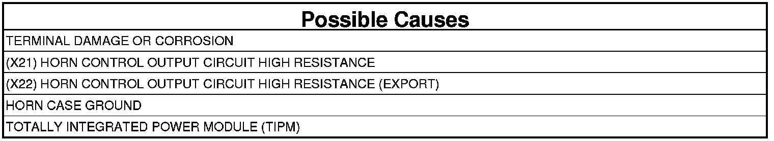 - Repair the excessive resistance in the Horn Control Output circuit.
