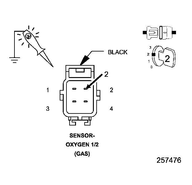 4. Using a 12 volt test light connected to ground, check the (K299) O2 1/2 Heater Control circuit in the Oxygen Sensor 1/2 harness connector.