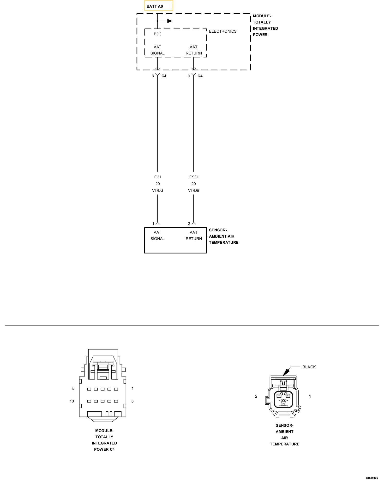 1. Using the wiring diagram/schematic as a guide, inspect the wiring and connectors between the Ambient Air Temperature Sensor and the Powertrain Control Module (PCM).