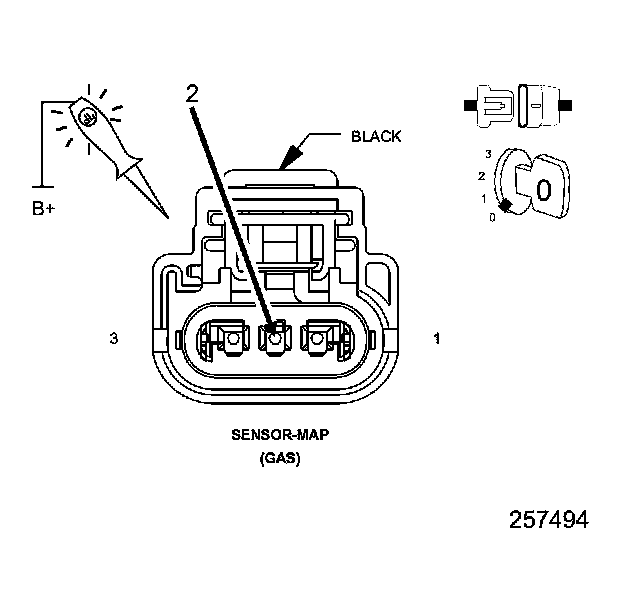 2. Using a 12 volt test light connected to 12 volts, check the (K900) Sensor Ground in the MAP Sensor harness connector.