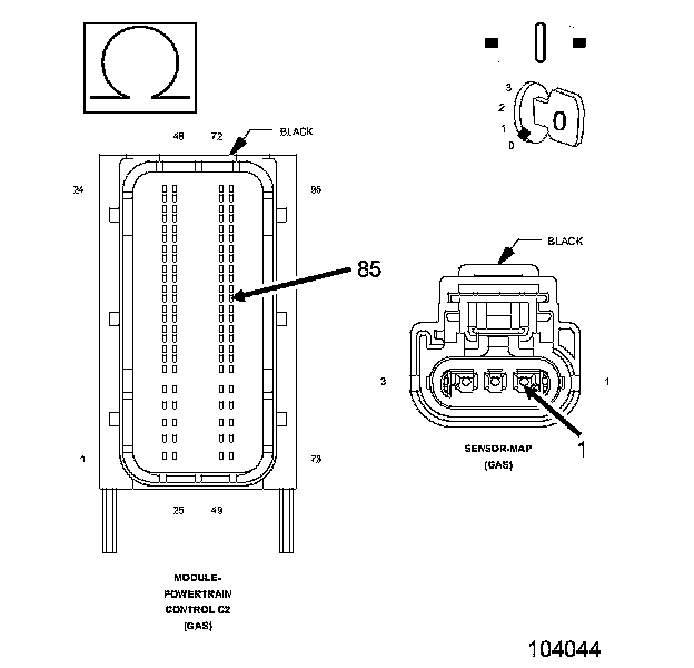 1. Using the wiring diagram/schematic as a guide, inspect the wiring and connectors between the MAP Sensor and the Powertrain Control Module (PCM).