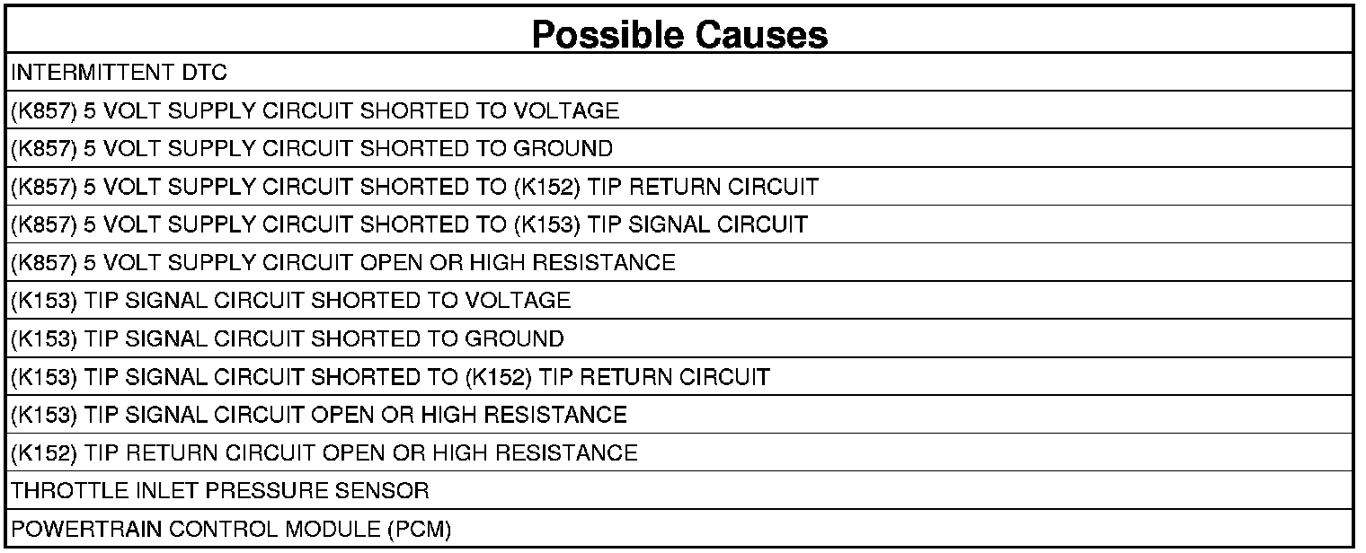 - Repair the (K857) 5 Volt Supply circuit for a short to the (K152) TIP Return circuit.