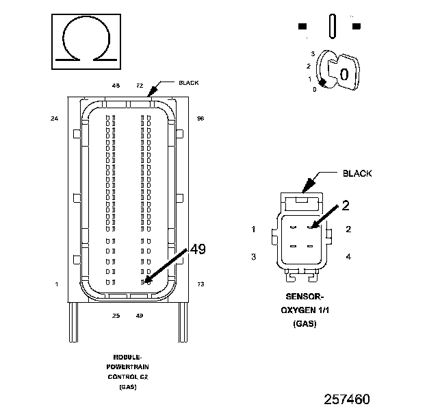 1. Using the wiring diagram/schematic as a guide, inspect the wiring and connectors between the Oxygen Sensor 1/1 and the Powertrain Control Module (PCM).