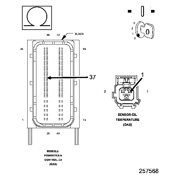 1. Using the wiring diagram/schematic as a guide, inspect the wiring and connectors between the Engine Oil Temperature Sensor and the Powertrain Control Module (PCM).