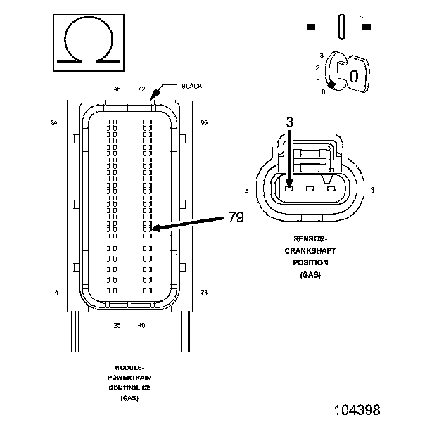 1. Using the wiring diagram/schematic as a guide, inspect the wiring and connectors between the Crankshaft Position Sensor and the Powertrain Control Module (PCM).