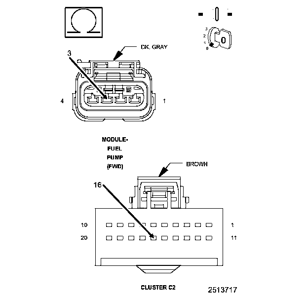 1. Using the wiring diagram/schematic as a guide, inspect the wiring and connectors between the Fuel Level Sensor and the Instrument Cluster (CCN).