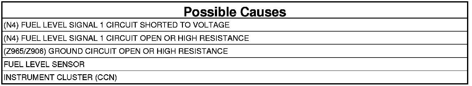 - Repair the open circuit or high resistance in the (N4) Fuel Level Signal 1 circuit.