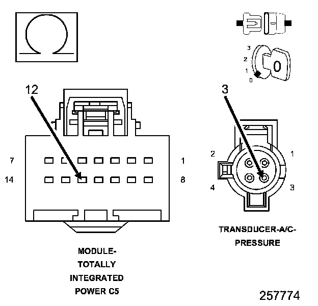 1. Using the wiring diagram/schematic as a guide, inspect the wiring and connectors between the A/C Pressure Transducer and the Totally Integrated Power Module (TIPM).