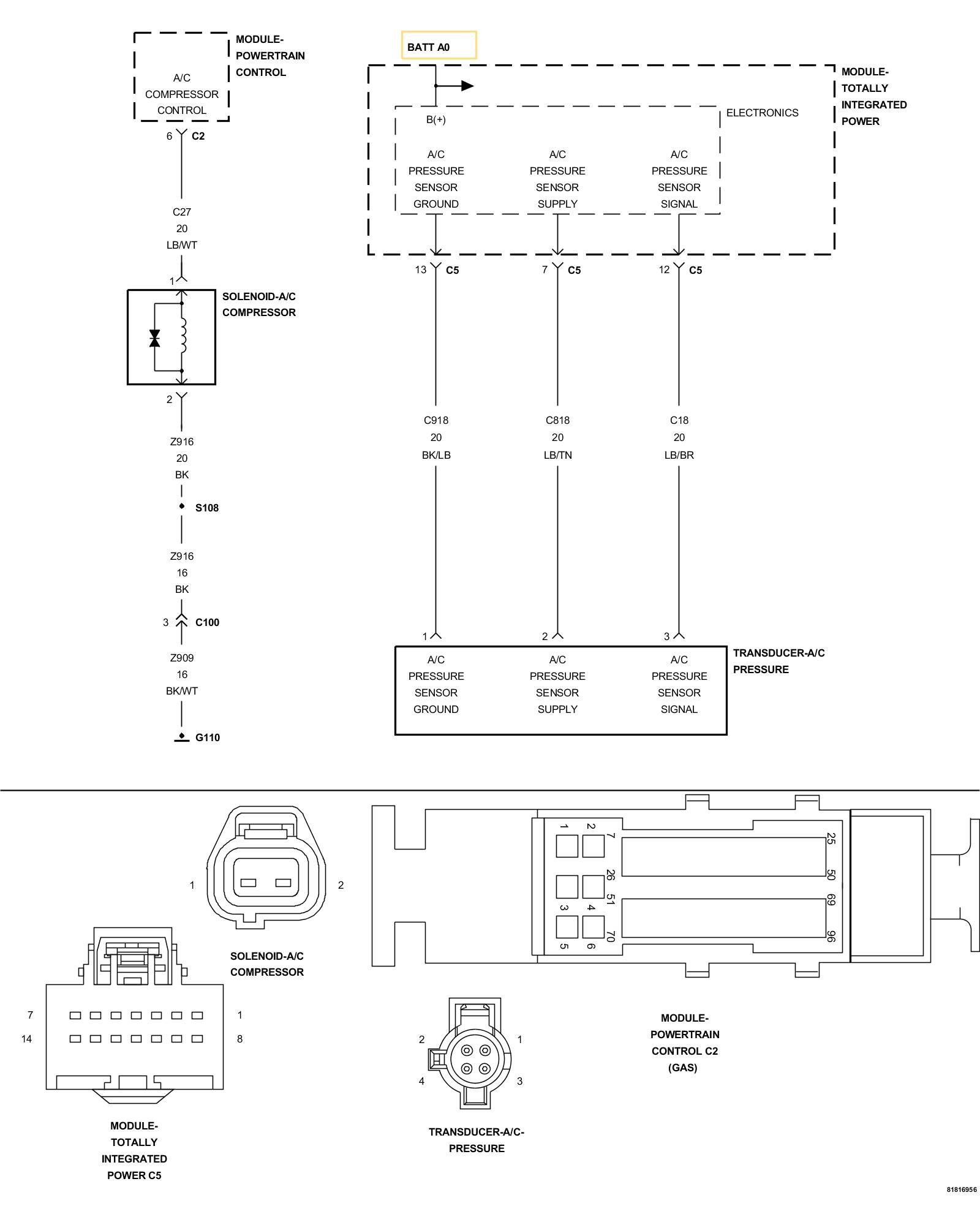 2. (C818) A/C PRESSURE SENSOR SUPPLY CIRCUIT SHORTED TO VOLTAGE
