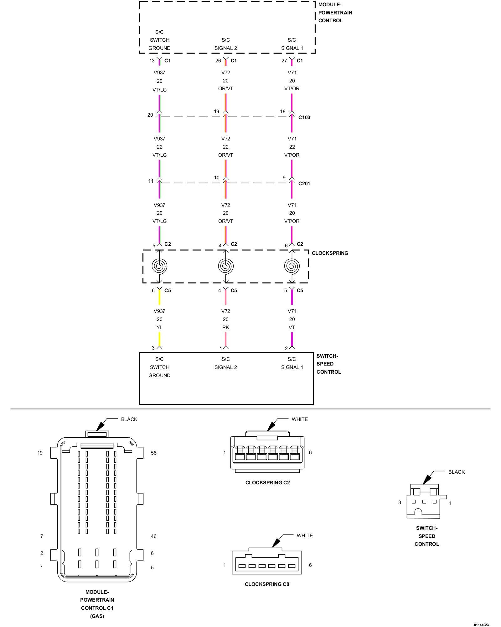 NOTE: The (V71) S/C Signal 1 voltage should be above 4.8 Volts with the Speed Control Switch removed.