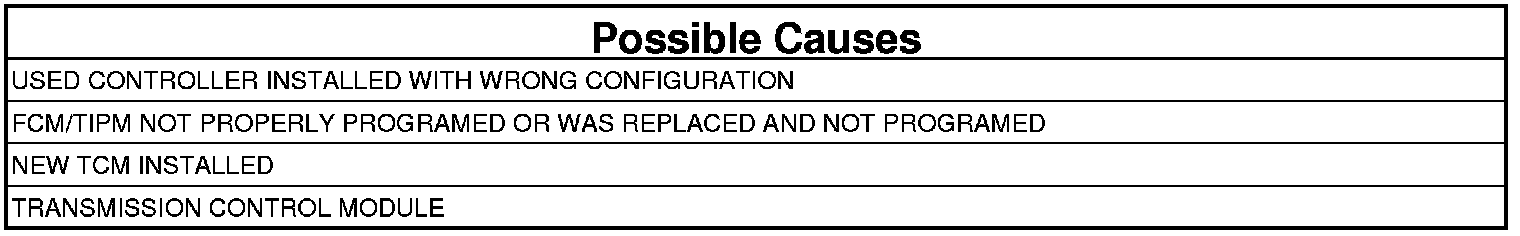 The Transmission Control Module (TCM) stores in its EEPROM vehicle information data transmitted over the CAN Bus from the FCM/TIPM. If the stored information in the TCM does not match the information obtained over the CAN Bus, the DTC will set.
