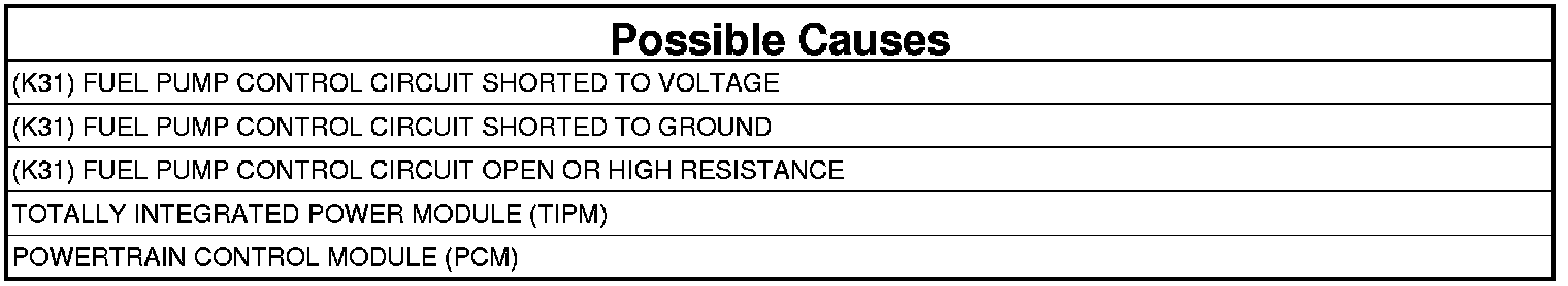 - Repair the short to ground in the (K31) Fuel Pump Control circuit.