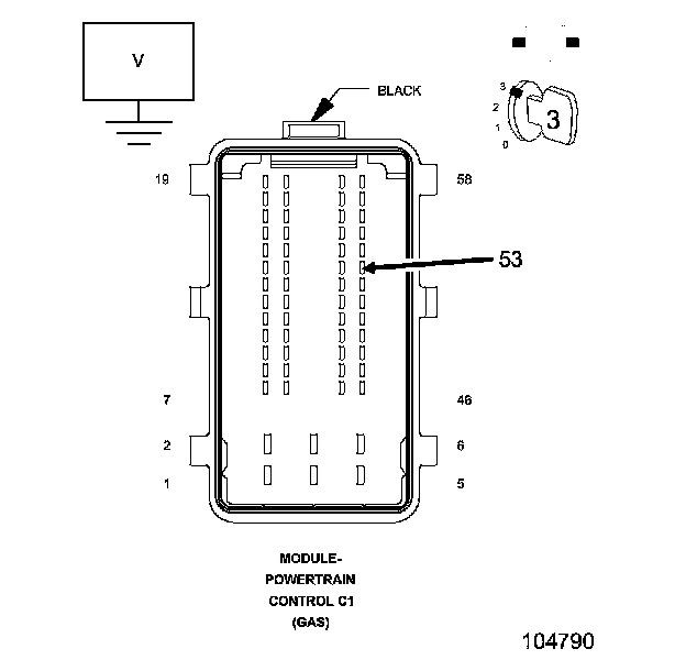 4. While backprobing, measure the voltage of the (K20) Gen Field Control circuit in the Powertrain Control Module (PCM) harness connector.