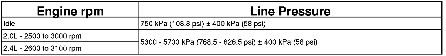 6. With the brakes still firmly applied, raise the engine rpm between 2700 - 3250 rpm and shift the transmission into Reverse, Drive and Low while recording the scan tool line pressure reading and the pressure gauge reading in each shift lever position.