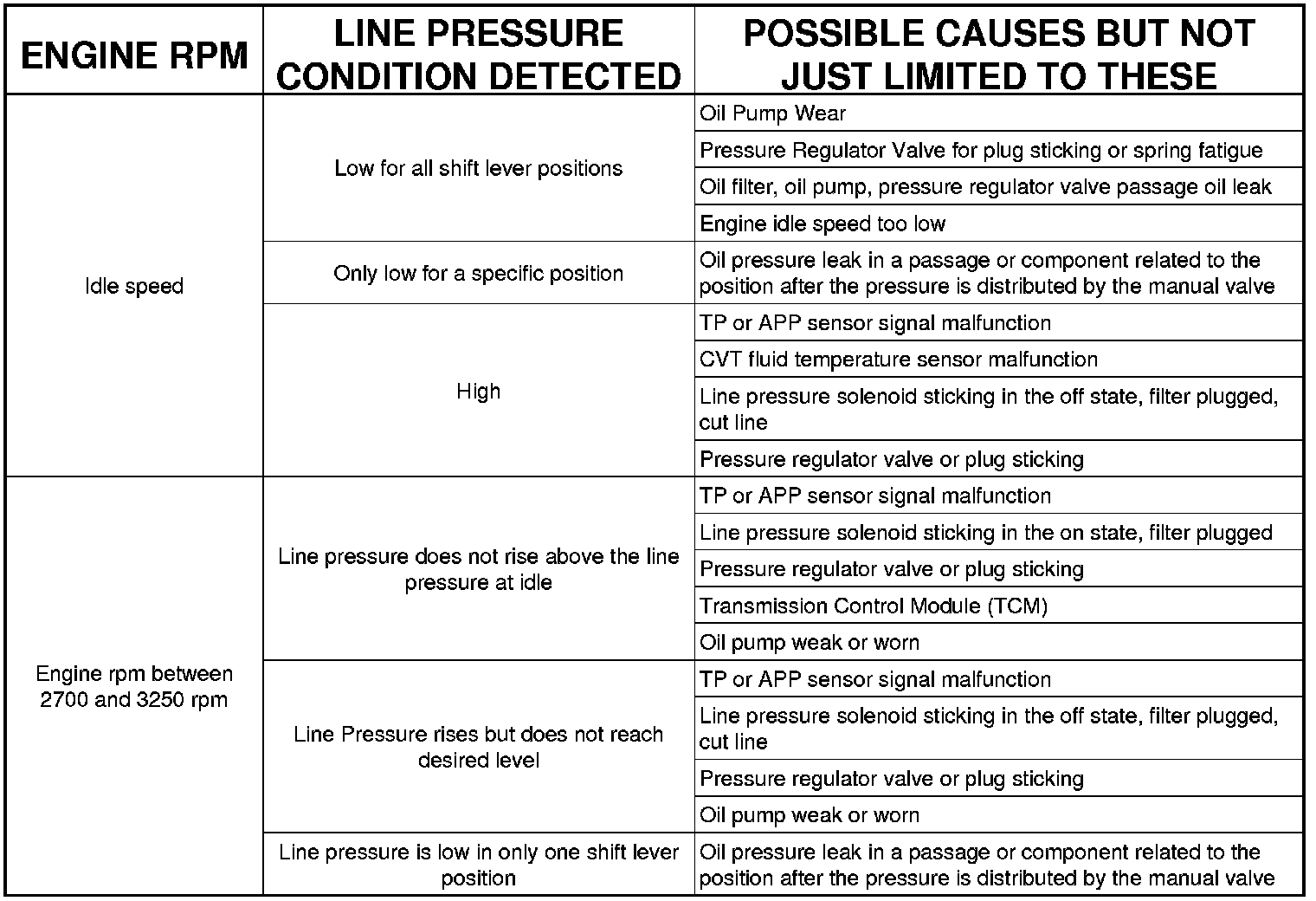 Always perform the CVT Pre-Diagnostic Troubleshooting procedure before proceeding. Testing and Inspection.