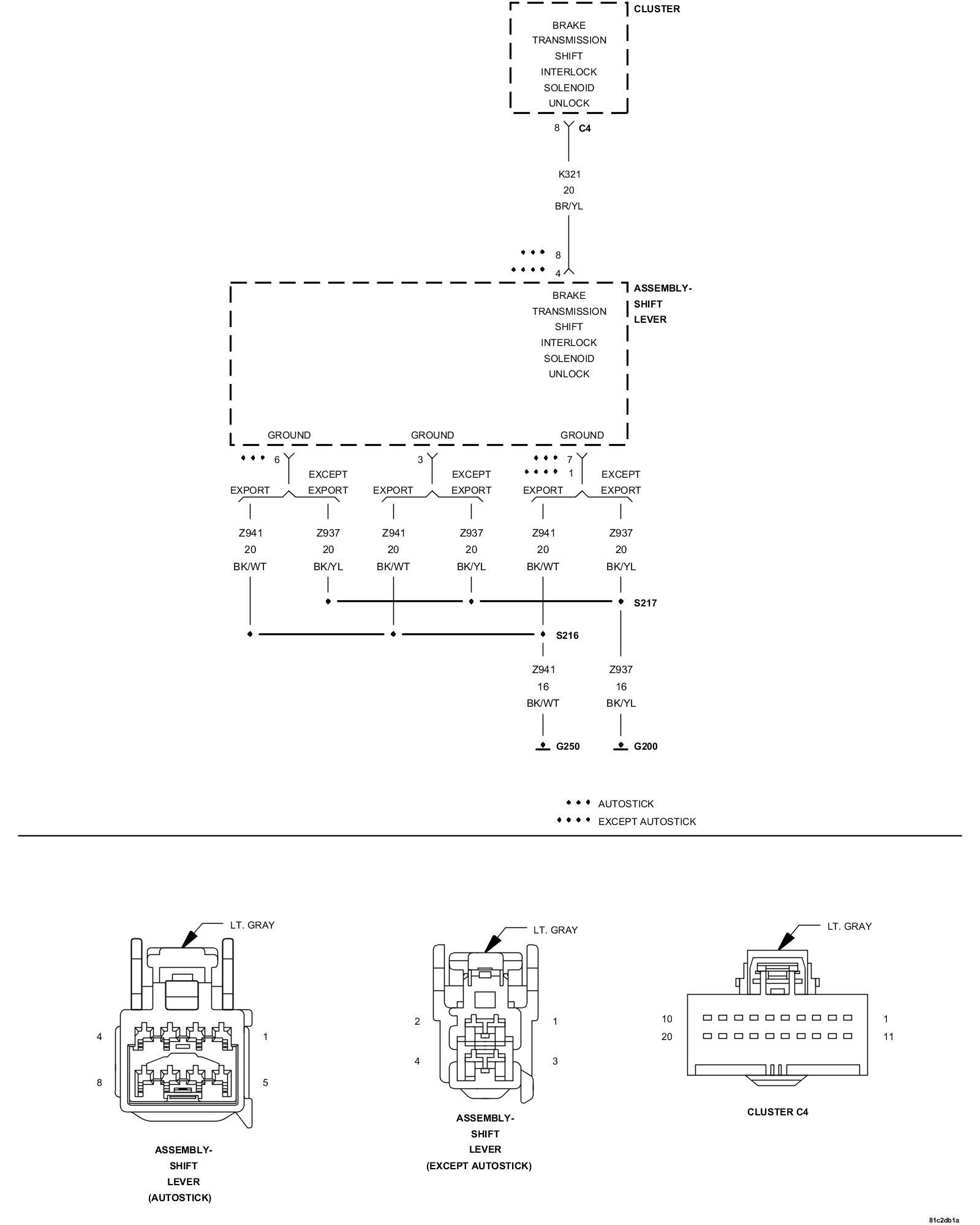 4. (K321) BRAKE TRANSMISSION SHIFT INTERLOCK SOLENOID UNLOCK CIRCUIT SHORTED TO VOLTAGE