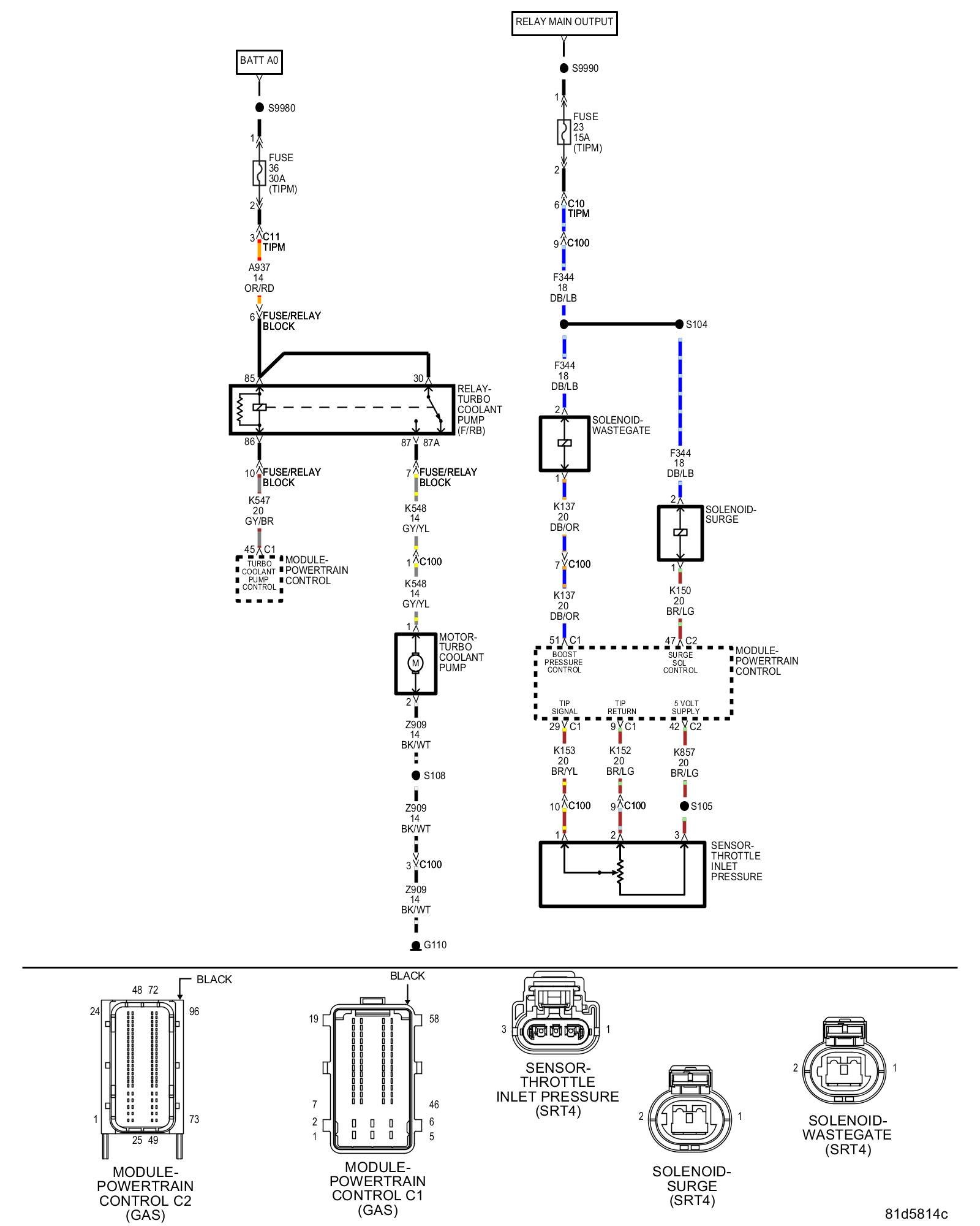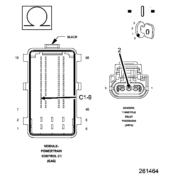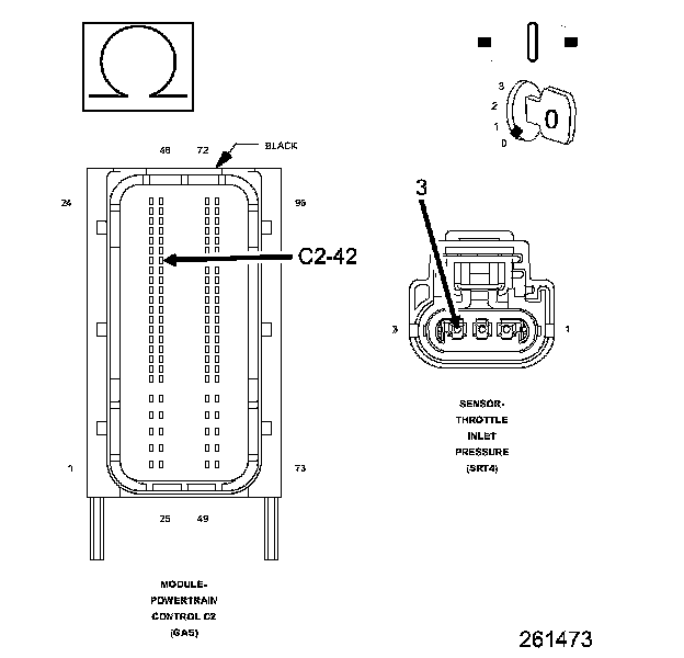 1. Using the wiring diagram/schematic as a guide, inspect the wiring and connectors between the Throttle Inlet Pressure Sensor and the Powertrain Control Module (PCM).