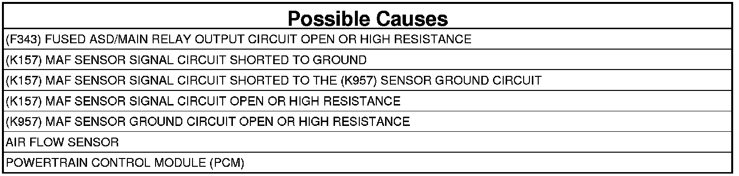 - Repair the (K157) MAF Sensor Signal circuit for a short to the (K957) MAF Sensor Ground circuit.