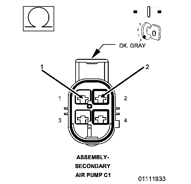 4. Using a 12 volt test light connected to ground, check the (F343) Fused ASD/Main Relay Output circuit in the C1 Secondary Air Pump Assembly harness connector.