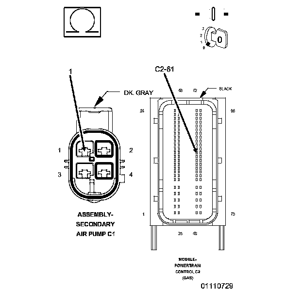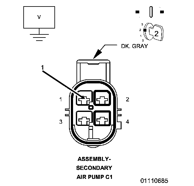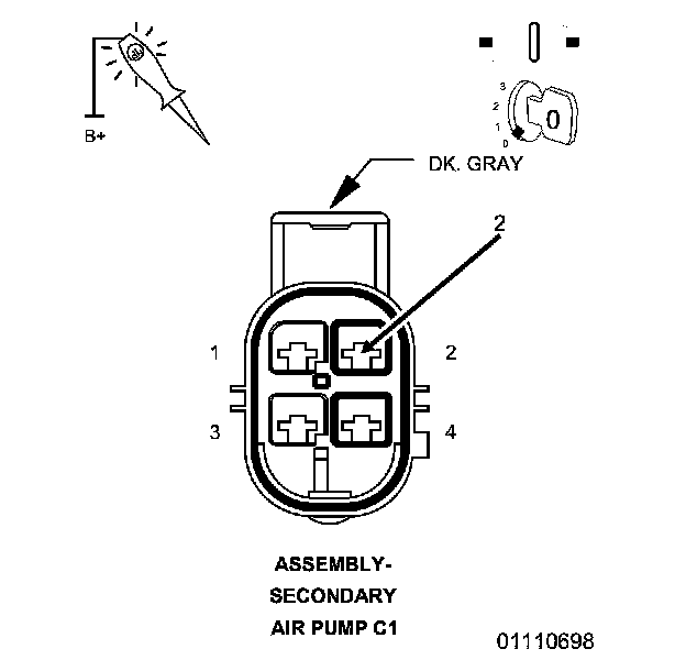 4. Using the wiring diagram/schematic as a guide, inspect the wiring and electrical connectors at the Secondary Air Pump Assembly.