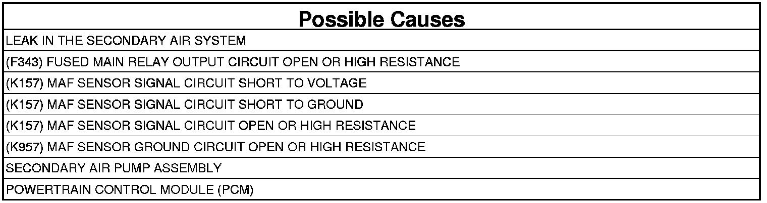- Repair the (K157) MAF Sensor Signal circuit for a short to ground.