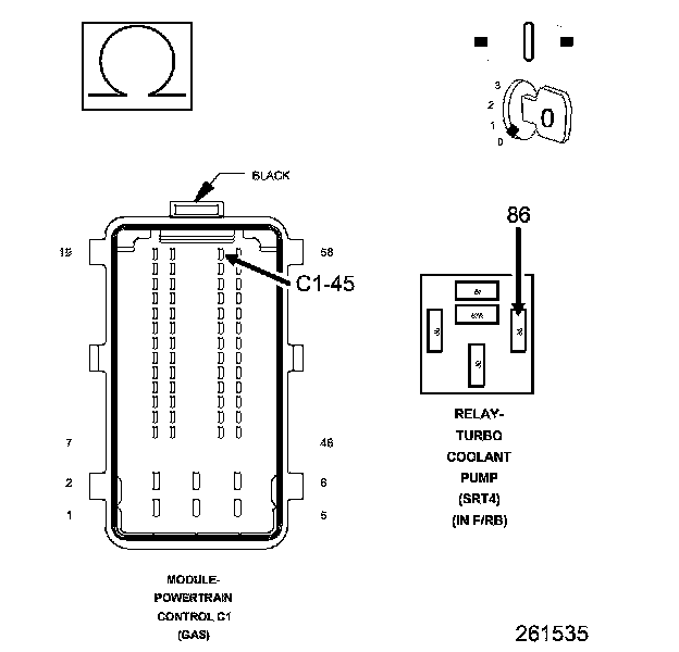 1. Using the wiring diagram/schematic as a guide, inspect the wiring and connectors between the Turbo Coolant Pump Relay and the Powertrain Control Module (PCM).