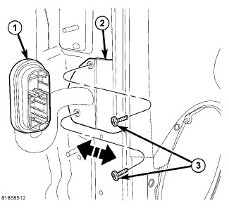 5. Using a trim stick C-4755 or equivalent, remove the outside mirror trim (3).
