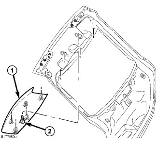 Using trim stick C-4755 or equivalent, pry up on upper trim(1) ensuring trim tabs disengage.