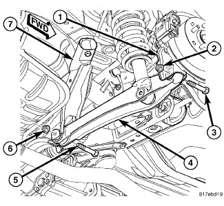 8. Install the lower link bolts (5 and 6) at the cradle.