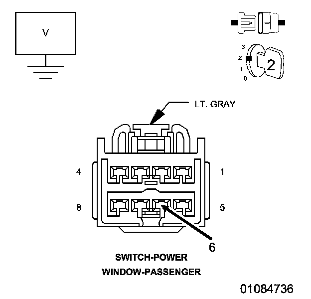2. Using a 12-volt test light connected to 12-volts, check the (Z960) Ground circuit in the Passenger Window/Door Lock Switch connector.