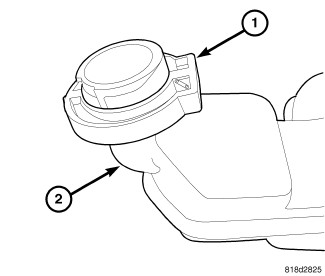 10. If not present, a reservoir blocker (1) must be installed on the fluid reservoir (2). The blocker can be removed from the original reservoir by releasing the retaining tab (3) and opening the blocker. To install the blocker, encircle the reservoir neck with the blocker, close the blocker, snapping the retaining tab into place. Make sure the blocker is securely latched.