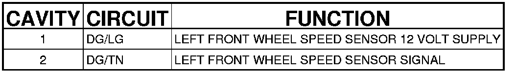 Left Front ABS Wheel Speed Sensor (Sensor Side) (Engine Compartment) 2 Way