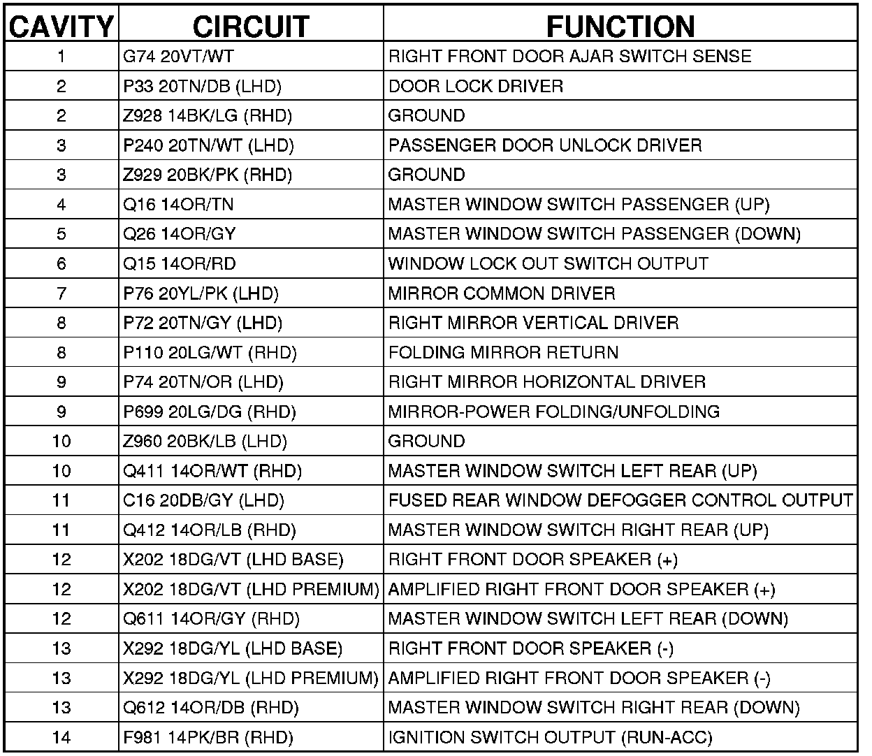 C303 - (RIGHT FRONT DOOR SIDE) 14 WAY