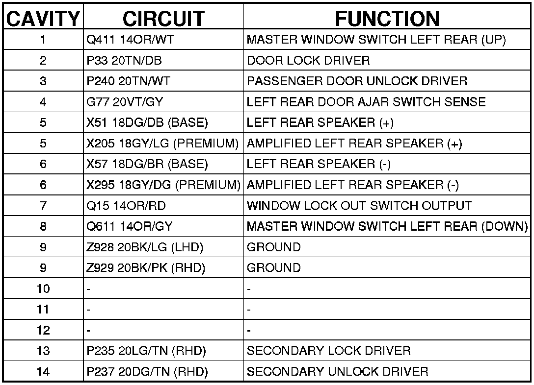 C308 (Left Rear Door Side) 14 Way