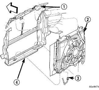 4. Install radiator fan/shroud assembly. Hand start fasteners.