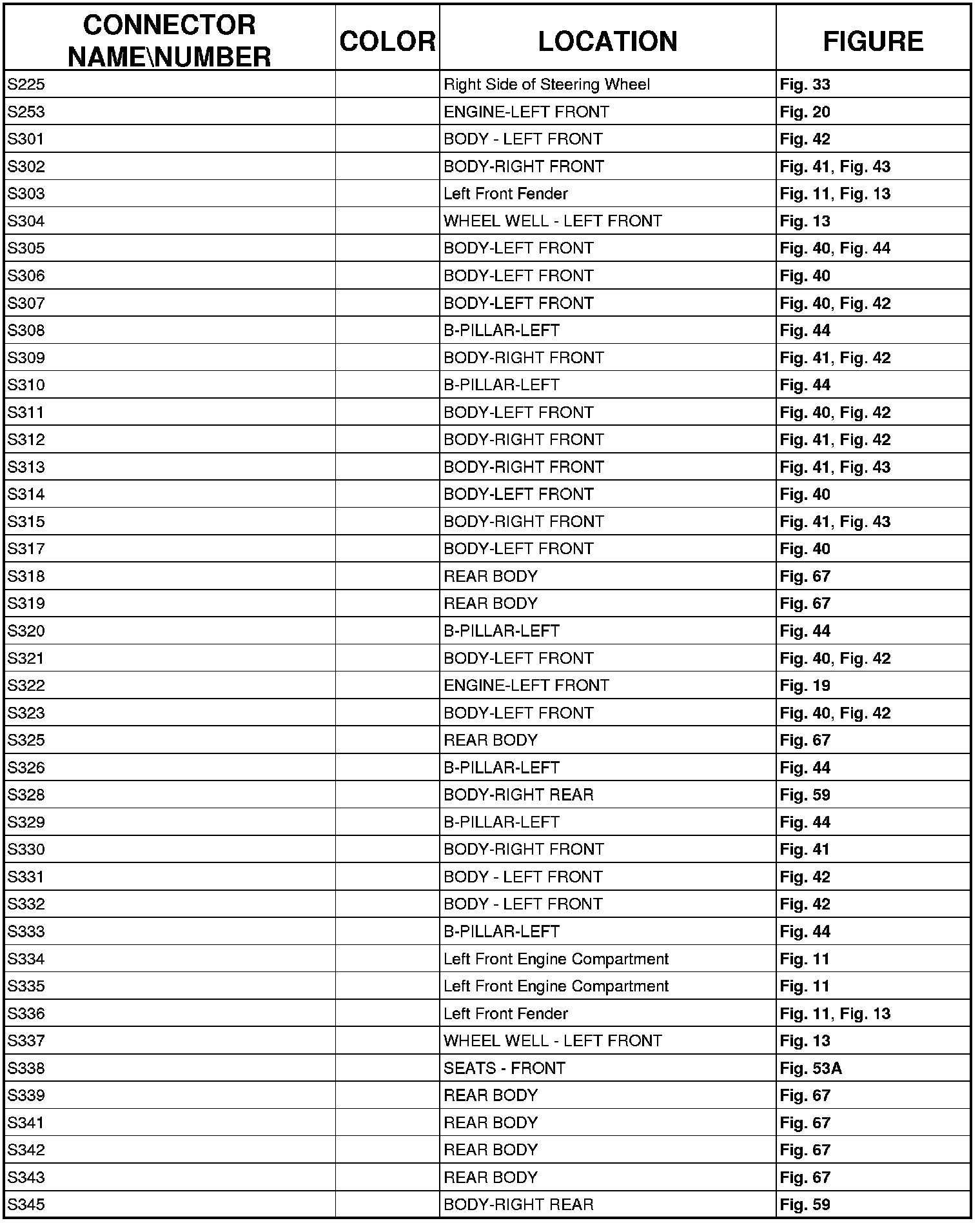 If a link on the index chart to a figure is not provided, that means that the splice and/or figure in question does NOT apply to the vehicle model selected.