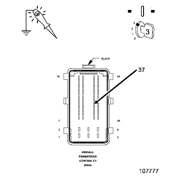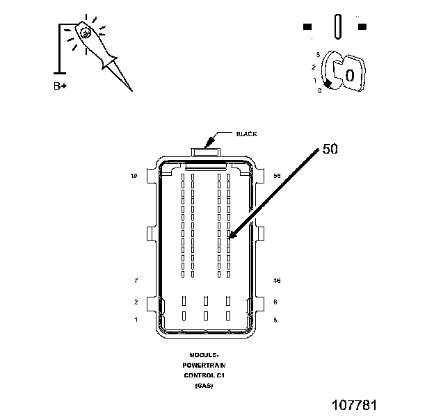 3. Using a 12-volt test light connected to battery voltage, probe the Clutch interlock Signal circuit in the PCM harness connector while pressing the clutch pedal in.