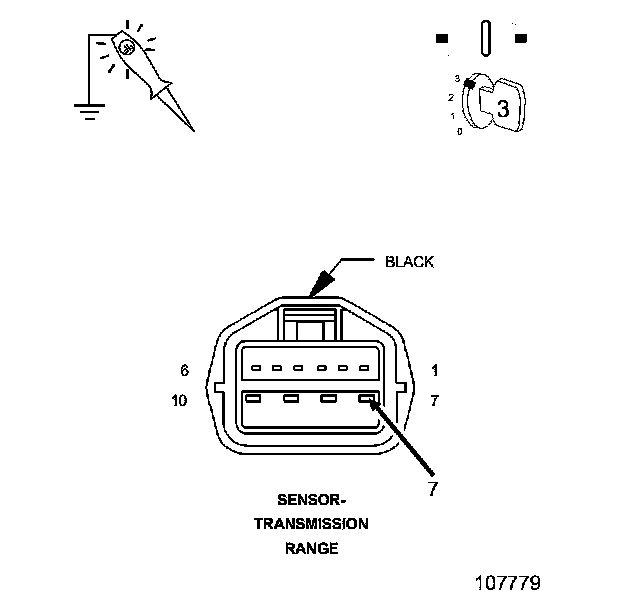2. Using a 12-volt test light connected to ground, probe the Fused Ignition Switch Output (Start) circuit in the Transmission Range Sensor harness connector.