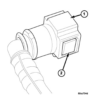 10. Pinch-Type Fitting: This fitting (1) is equipped with two finger tabs (2). Pinch both tabs together while removing fitting. Special tools are not required for disconnection.