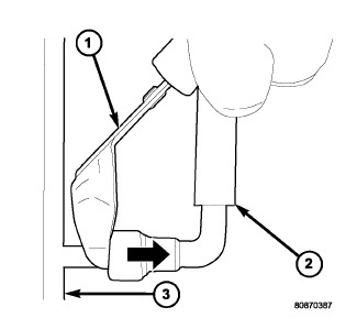 12. Press release tab on side of fitting to release pull tab (1). If release tab is not pressed prior to releasing pull tab, pull tab will be damaged.