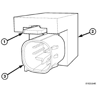 The seat track position sensor (2) is a Hall Effect-type sensor used on some vehicles. This sensor consists of a Hall Effect Integrated Circuit (IC) chip encased in potting material within a cavity of the molded plastic sensor housing.