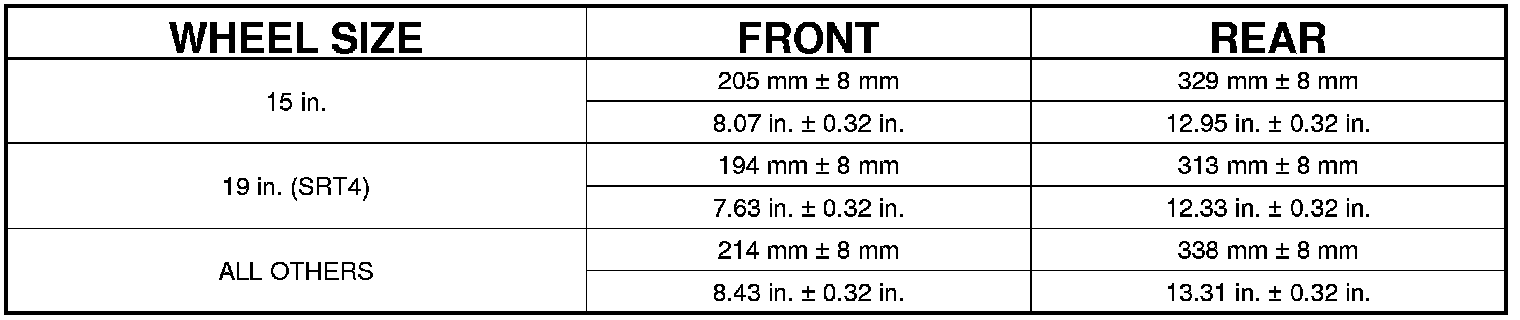 CURB HEIGHT SPECIFICATIONS - 2.0L GAS ENGINE