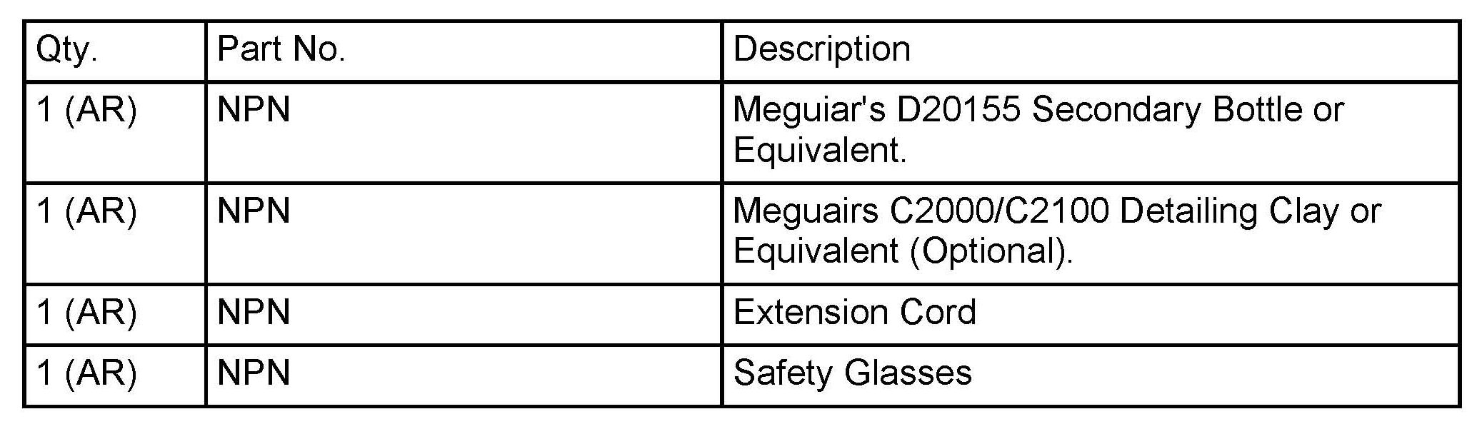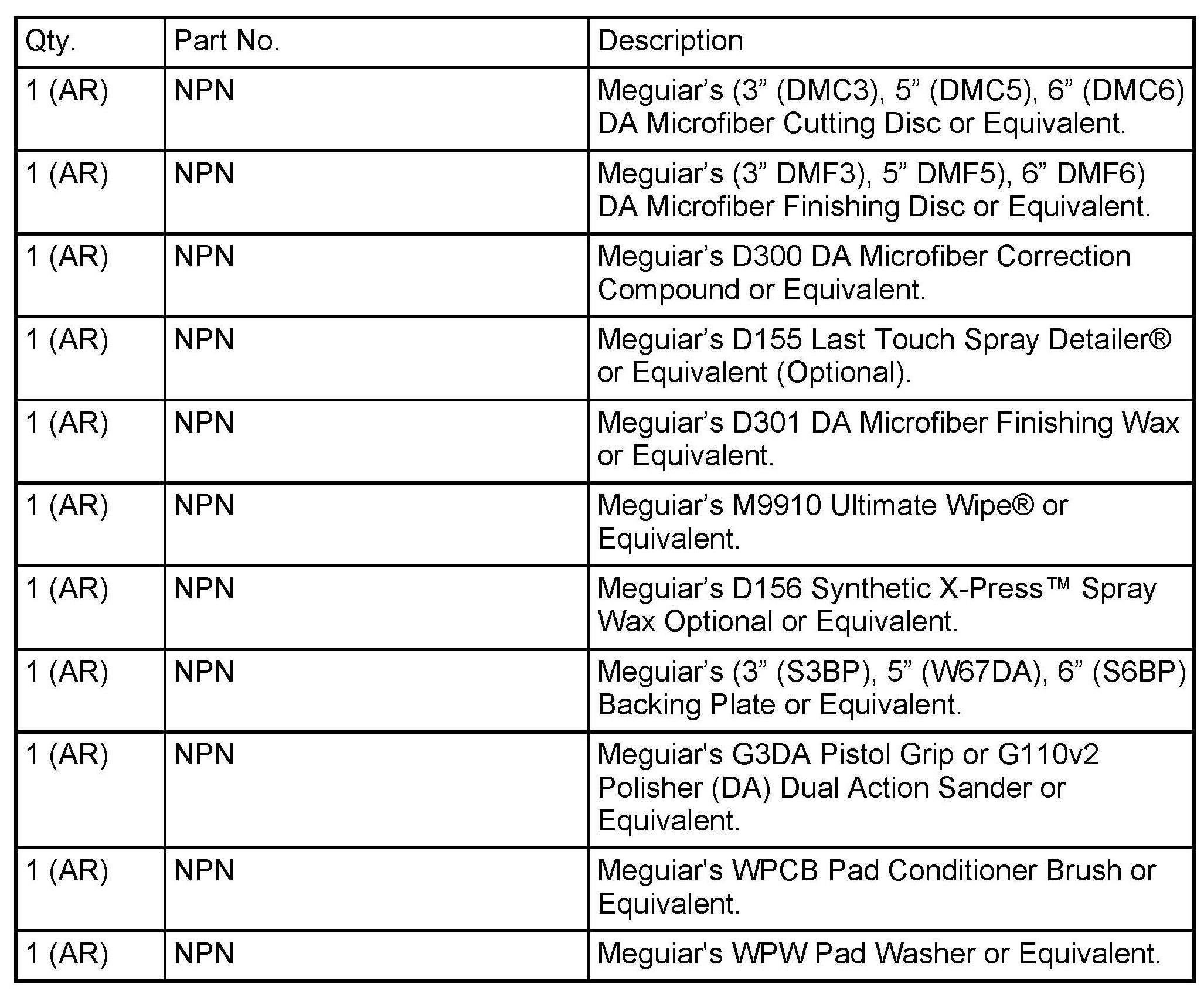 A final wipe down using Meguiar's Synthetic X-Press Spray Wax (D156) or equivalent and two Detailing Cloths, will yield added depth, shine and protection.