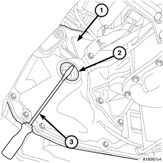 Remove the seal (2) from the transaxle using a screwdriver (3).